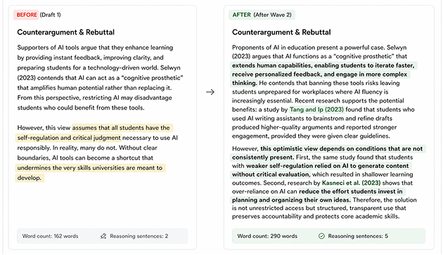 - Probe C (Counterargument strength): “Will the counterargument be the strongest pro-AI academic position, not a weak ‘some people disagree’ paragraph?”