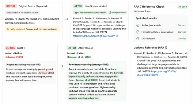- Probe E (APA precision): “Will you ensure in-text citations match the reference list and include DOI when available?”